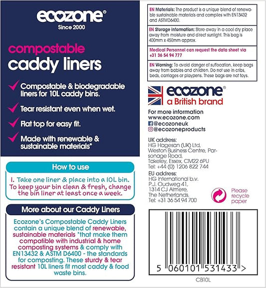 EcoZone Small Bin Bags 10 Litre (Compostable, 22 bags per roll)