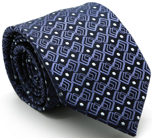 Mens Dads Classic Navy Geometric Pattern Business Casual Necktie & Hanky Set G-2